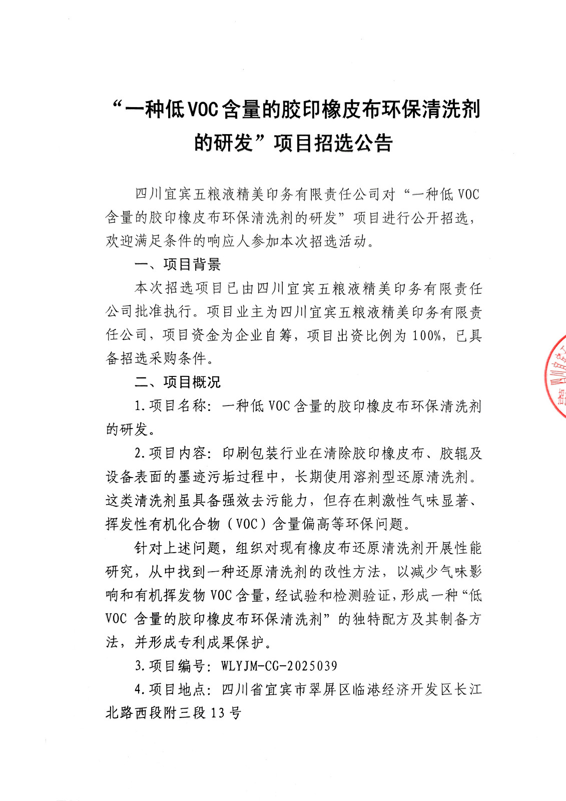 一种低VOC含量的胶印橡皮布环保清洗剂的研发招选公告