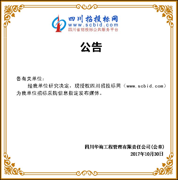 当前位置:四川招投标网 -> 招标公告 -> 会员公告专区 -> 四川华询工程管理有限责任公司