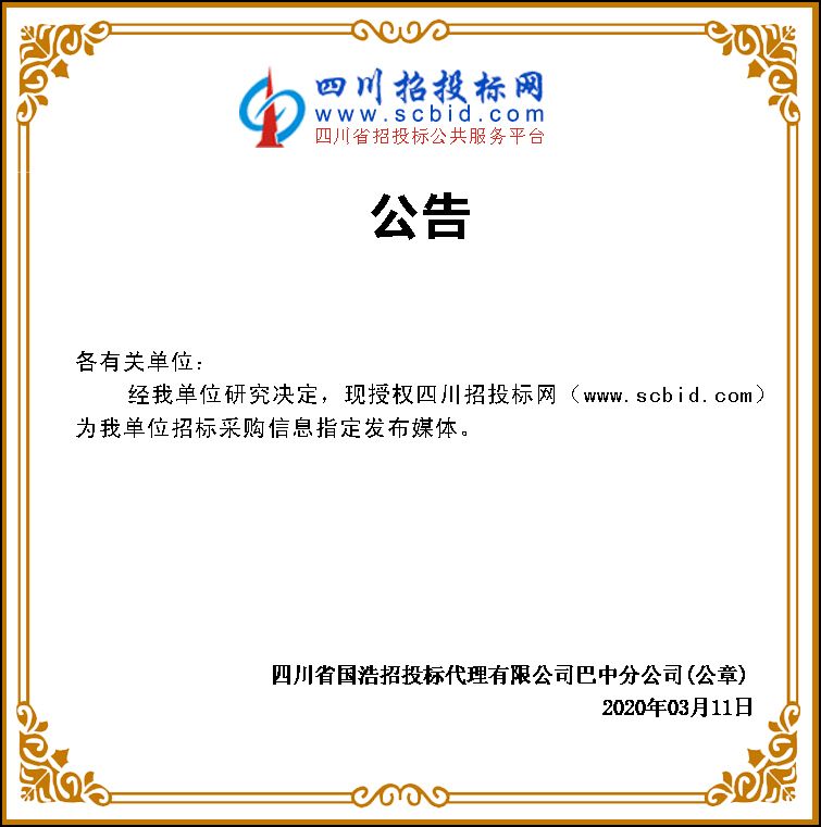 当前位置:四川招投标网 -> 招标公告 -> 会员公告专区 -> 四川省国浩招投标代理有限公司巴中分公司