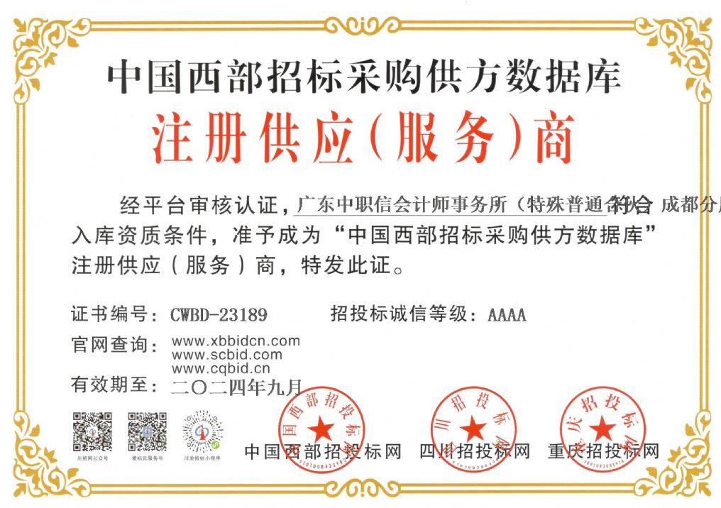 CWBD-23189广东中职信会计师事务所(特殊普通合伙)成都分所